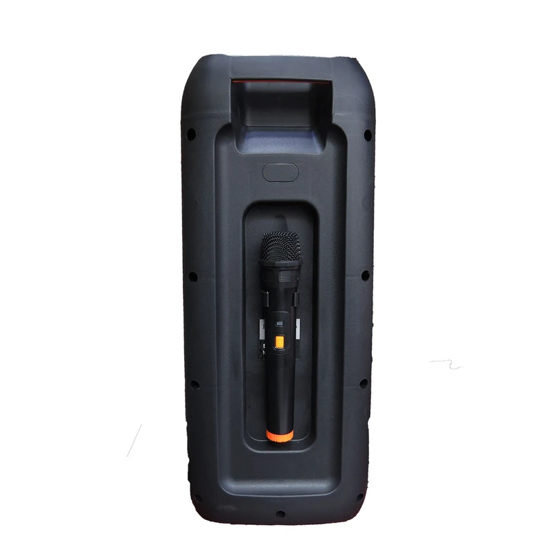 اسپیکر حرفهای PartyBox RS-D30 جدیدترین مدل از اسپیکرهای سری پارتی باکس از کمپانی معتبر تلاش می باشد. شما میتوانید از این سیستم صوتی در دو حالت برق یا باتری استفاده کنید. درایورهای حرفهای این اسپیکر صدای موسیقی را با وضوحبالا و بیس قدرتمندی پخش میکنند و باعث افزایش هیجان مهمانی شما میشوند. کانکشنهای پرکاربرد به شما امکان اتصال آسان به دو صورت بیسیم و باسیم را میدهند تا بتوانید با هر دستگاهی بهراحتی به این سیستم صوتی متصل شوید و موسیقی دلخواه خود را بشنوید. برای اتصال به PartyBox RS-D30 کافی است بلوتوث موبایل یا تبلت خود را روشن کنید، اسپیکر را جستجو کرده و متصل شوید. میتوانید آهنگهای موردعلاقه خود را در یک فلش مموری بریزید و از طریق پورت USB به اسپیکر متصل کرده و پخشکنید. همچنین میتوانید توسط کابل AUX دستگاه خود را از طریق ورودی 3.5 میلیمتری به اسپیکر متصل کنید. حالا فقط دکمه پخش را فشار داده و از شنیدن موسیقی موردعلاقه خود لذت ببرید. همچین میکروفون های بیسیم و دیجیتال همراه با اسپیکر علاوه بر کیفیت بسیار بالا شامل 4 صدای مختلف میباشد که بازی خانندگی را بسیار جذاب و سرگرم کننده میکند.